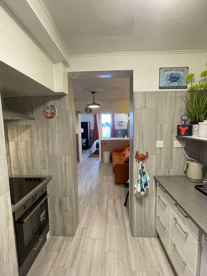 A newly refurbished ground floor apartment . Fresh “ nautical feel" that will immediately make you feel connected to the seaside. A one minute stroll to the beach and 5 minutes to Eastbourne's traditional pier and town centre. A popular Italian ice cream parlour ( also serving breakfast and lunch ) only yards away from this spacious apartment. Pet friendly too!